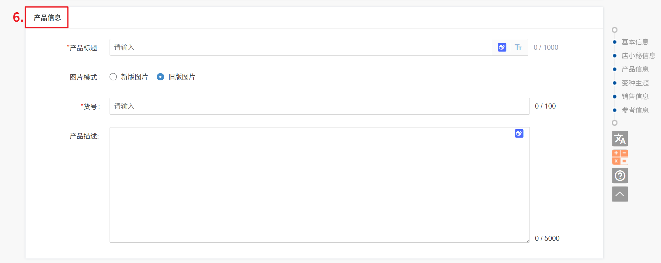 ② 选择旧版图片:不需要上传产品图片、方形图