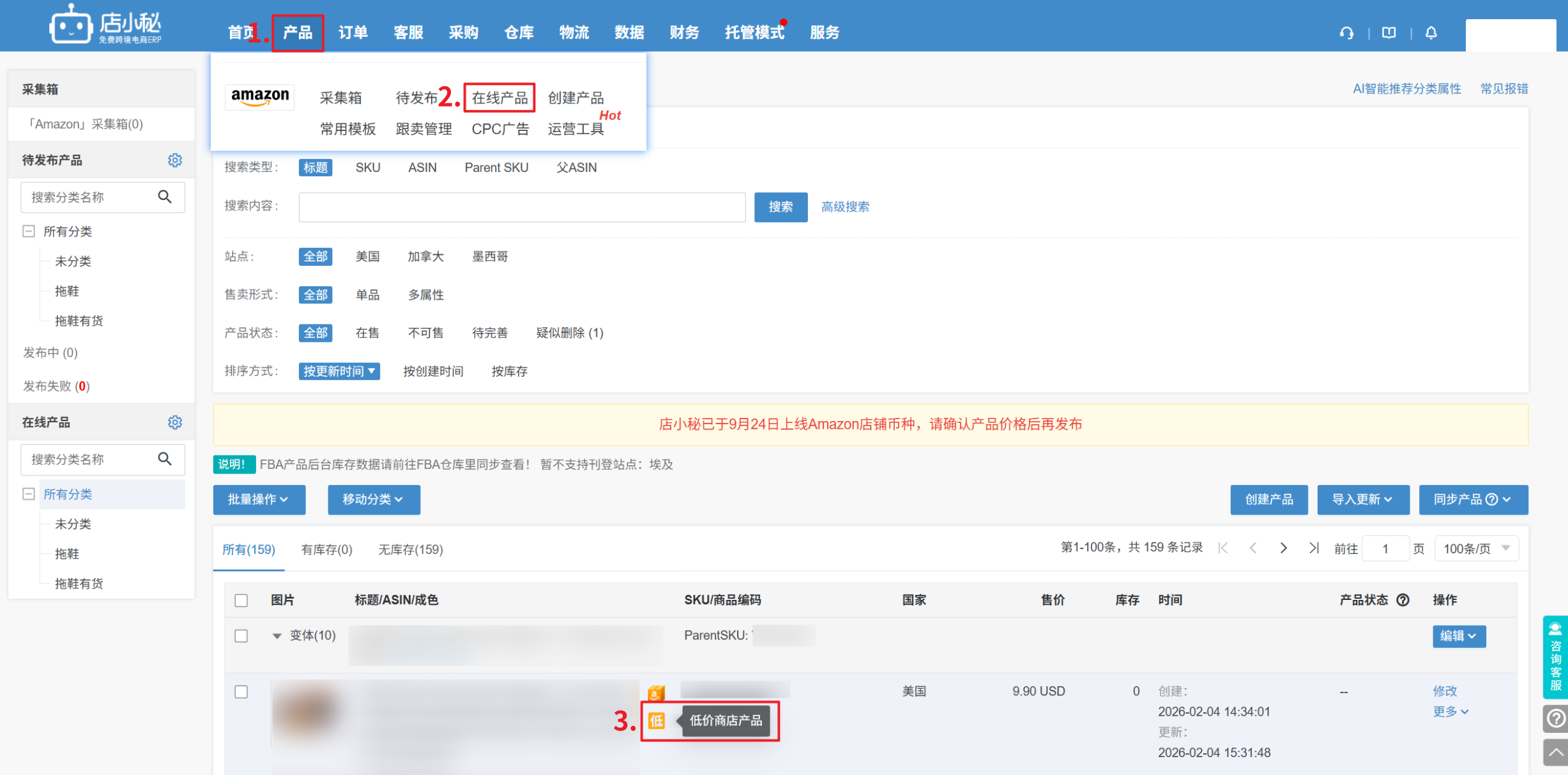 Q1:为什么Amazon后台可以发布低价商店产品,小秘页面店铺授权页不显示“低”字标识,也无法选择发布低价商店产品呢?