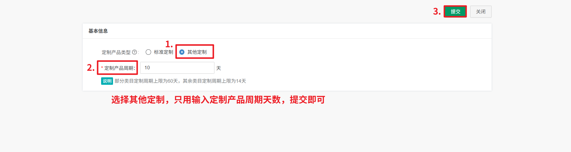 2、其他定制:只能输入定制周期,其他不支持