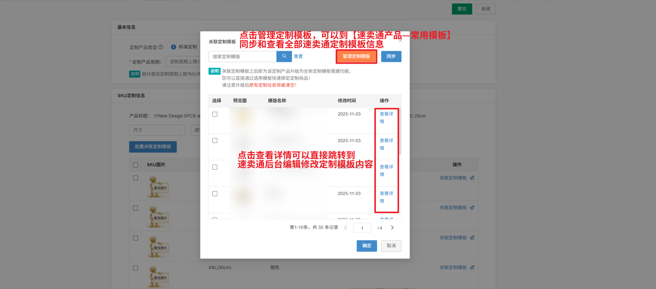 关联定制模板时,点击【查看详情】可以直接跳转到速卖通后台编辑修改当前定制模板内容
