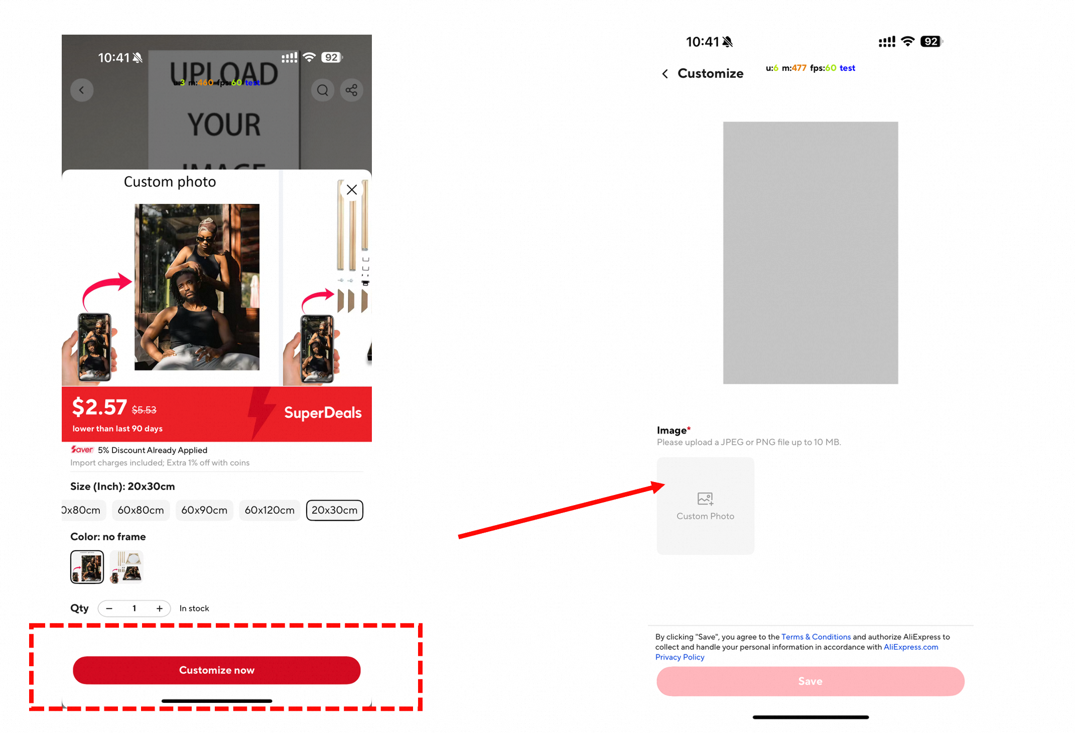 A1:产品关联定制模板后,买家在选择好商品后,可点击“Customize Now”,即可跳转出定制模板页面,