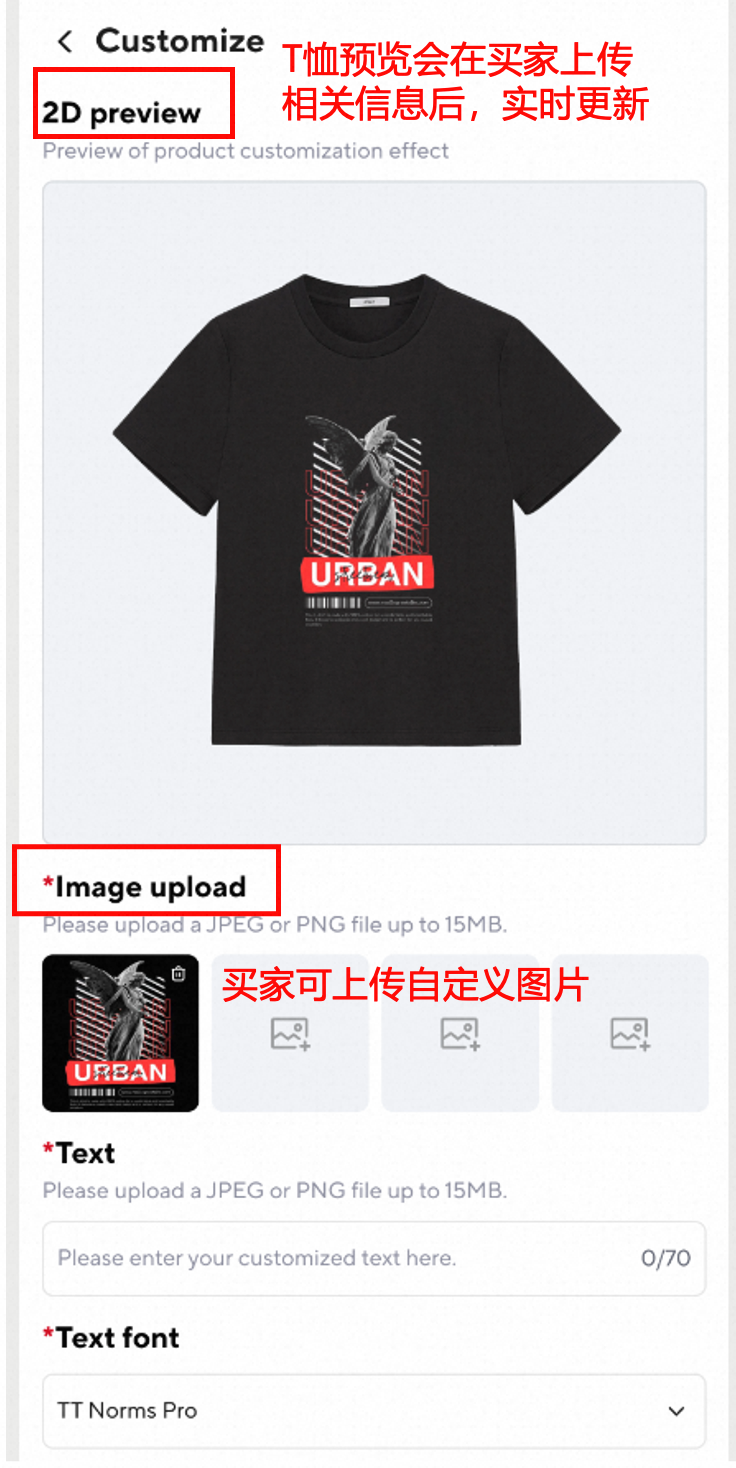 买家可根据模板页面指引上传自定义图片/文字等进行个性化定制(如下图所示)
