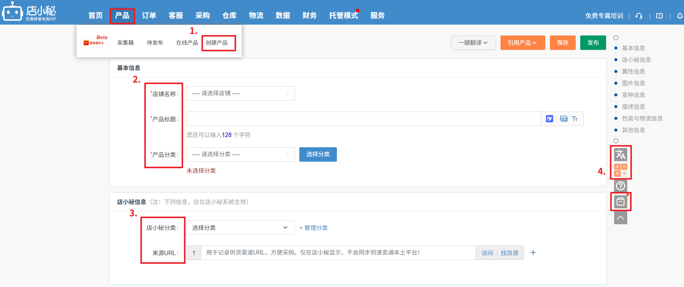 1、数据采集: 将其它电商平台站点的产品信息一键采集到店小秘