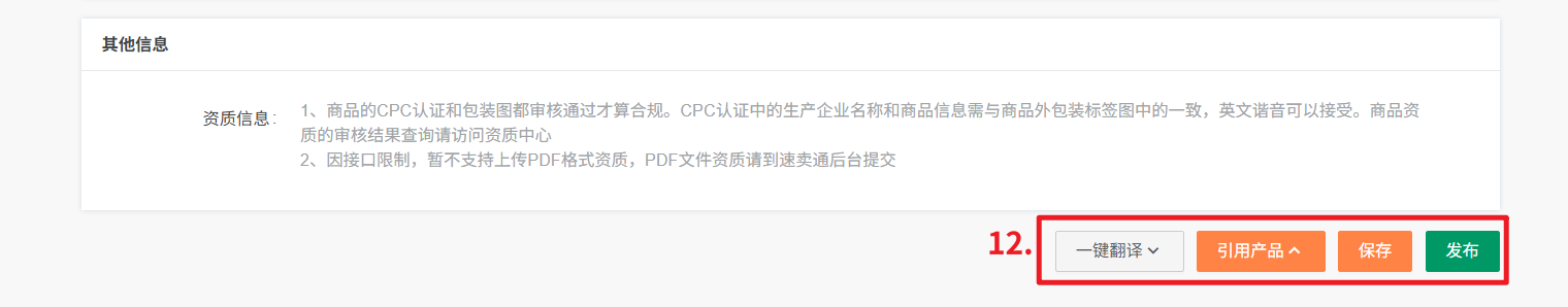 ② 资质信息:平台要求部分分类必须上传资质信息,只有速卖通店铺后台支持上传资质信息的产品分类