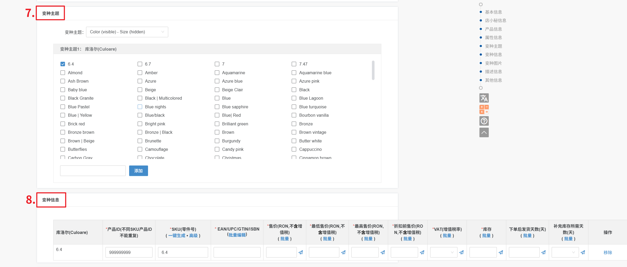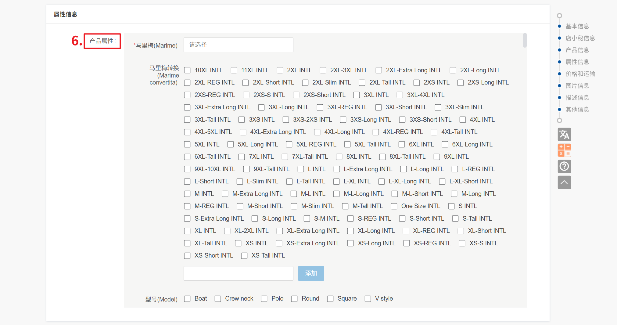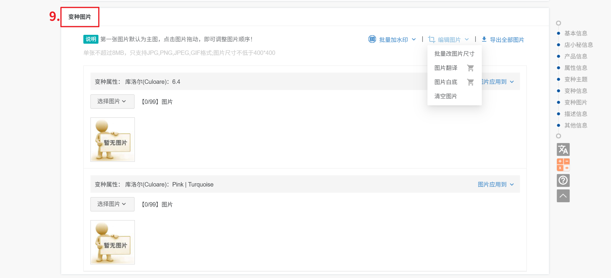 ② 根据产品分类同步,部分分类变种属性值支持自定义添加,字符不超出20个