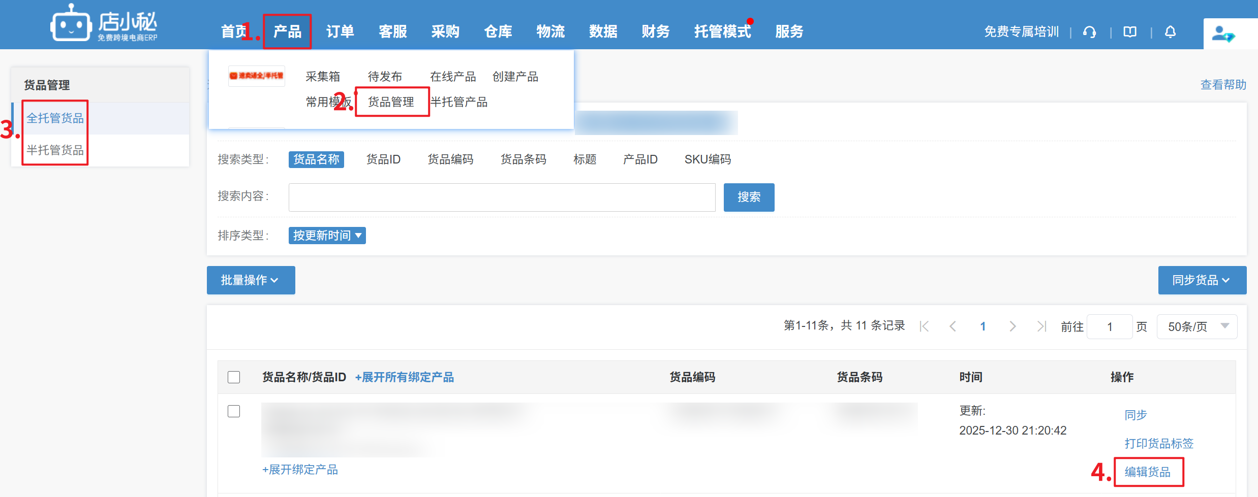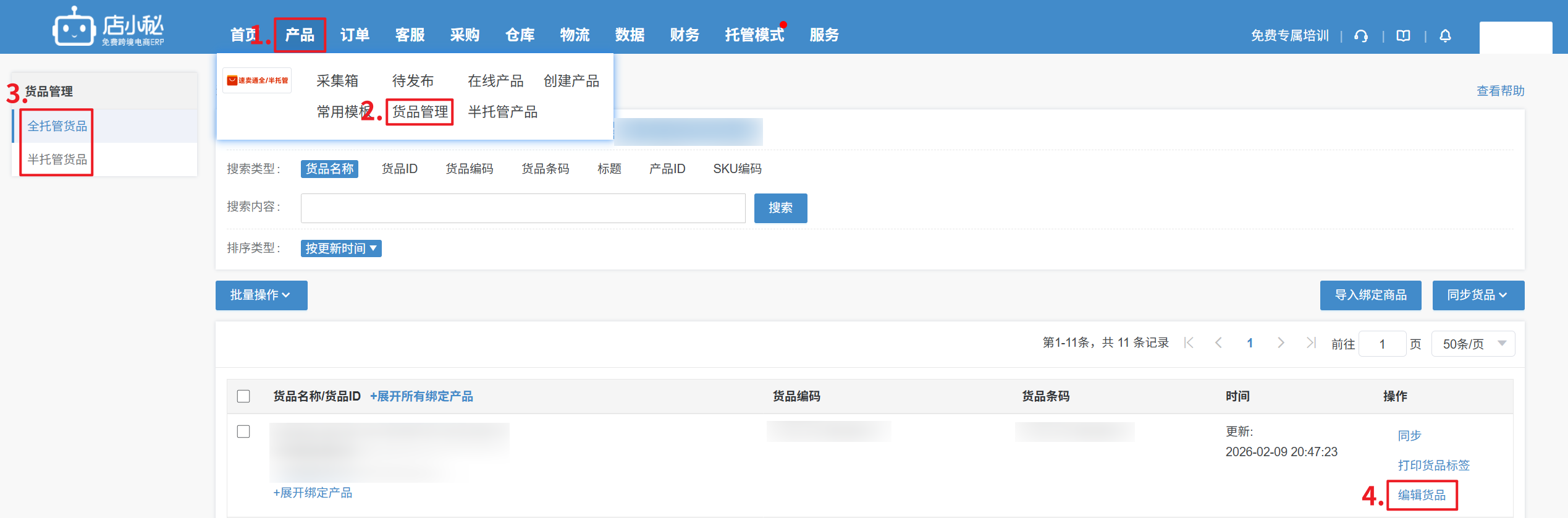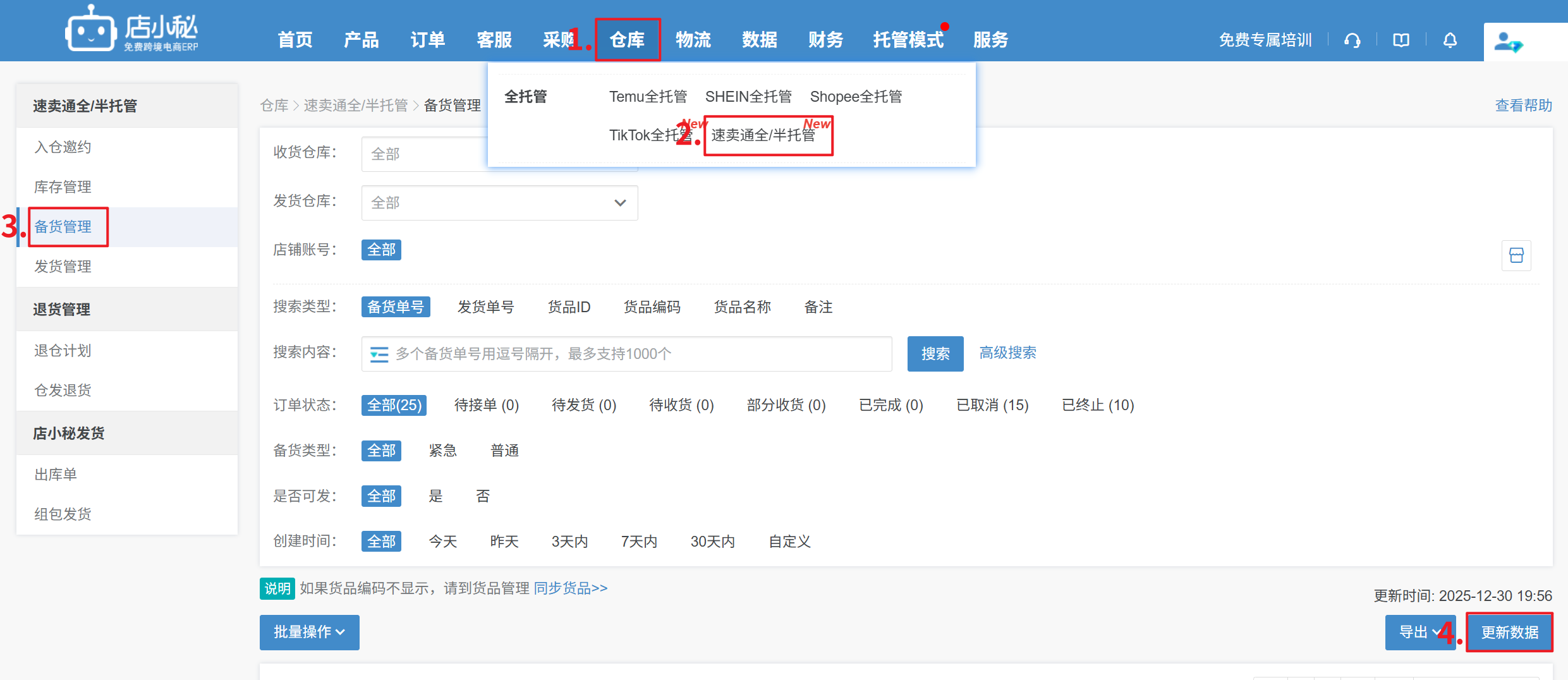【仓库—速卖通全/半托管—备货管理—更新数据】