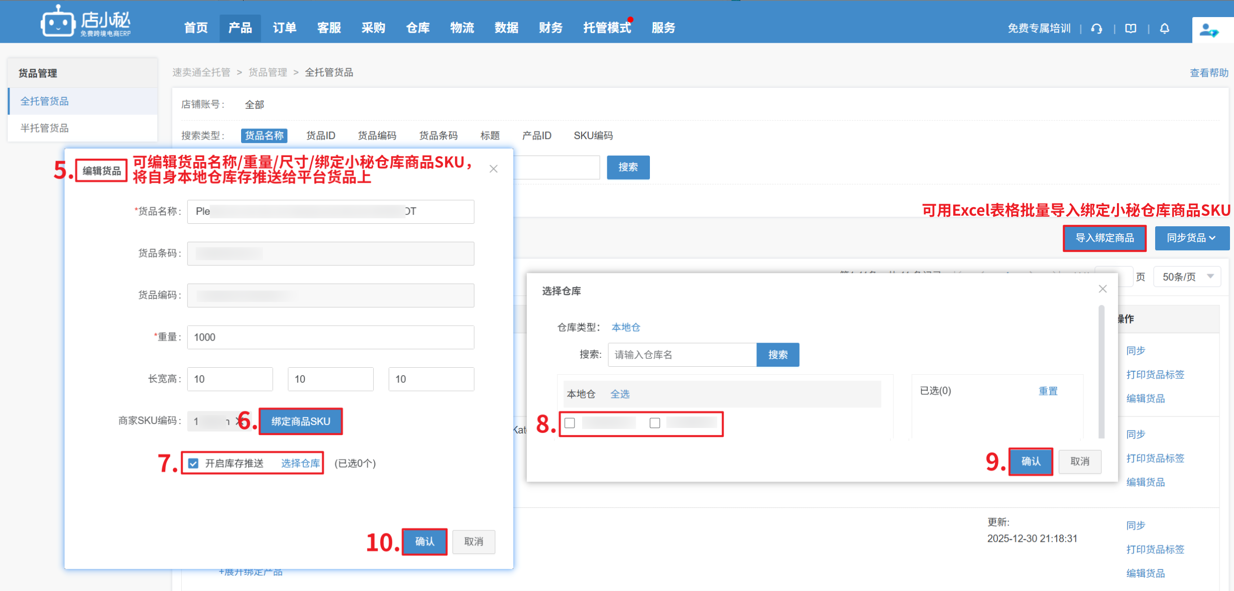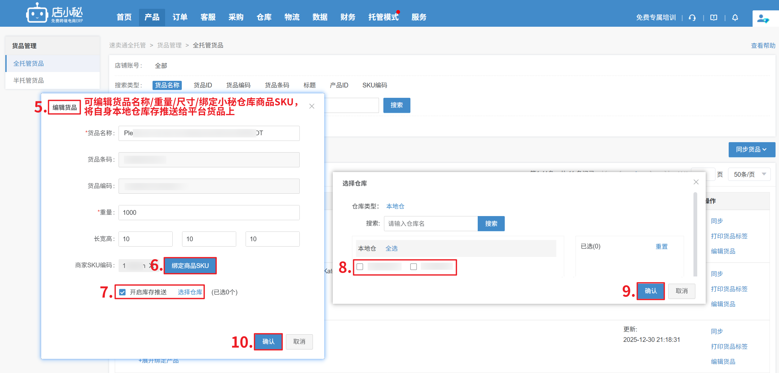 第三步:被标记为CPFR店铺的商家,支持在小秘页面编辑货品信息,并绑定小秘仓库商品SKU开启库存推送