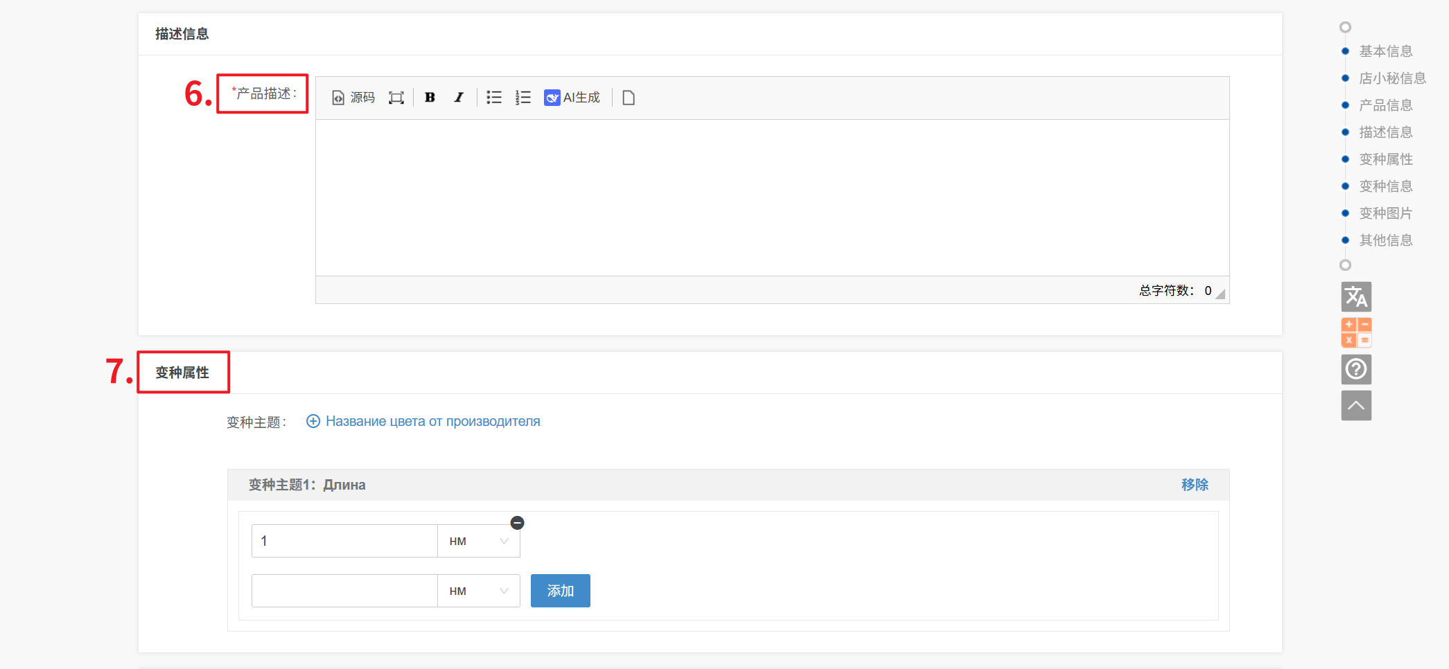 变种主题、变种属性:产品以什么维度区分变种的,例如颜色、尺寸等属于变种主题,选择变种主题后,在勾选对应的变种属性值