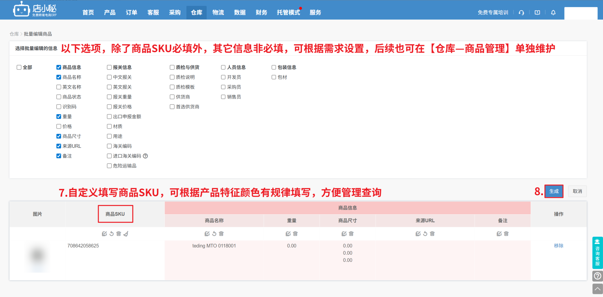 注意:“商品SKU”填写到“SKU”,‘’平台SKU‘’填写到“平台SKU”,“主图片URL”填写到“图片URL”,“产品来源URL”填写到“来源URL”