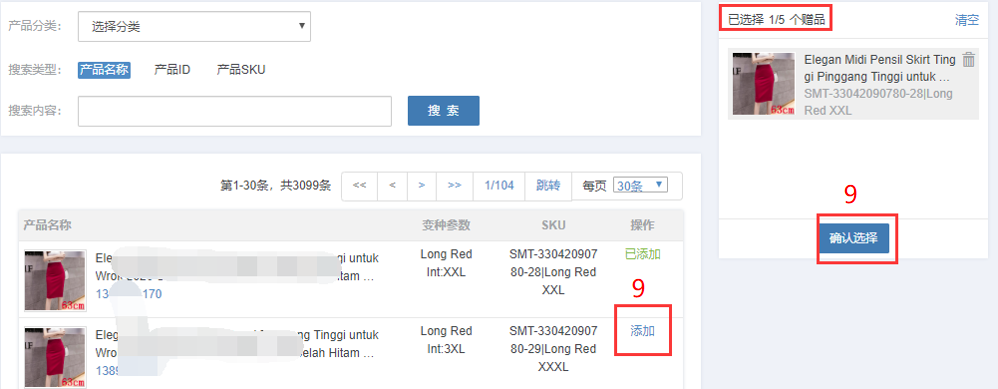 当选择活动范围为部分产品时,需要点击【提交且下一步】选择具体的参加活动的产品