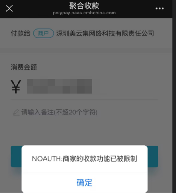 Q1:用微信扫码支付会提示:商家的收款功能已被限制
