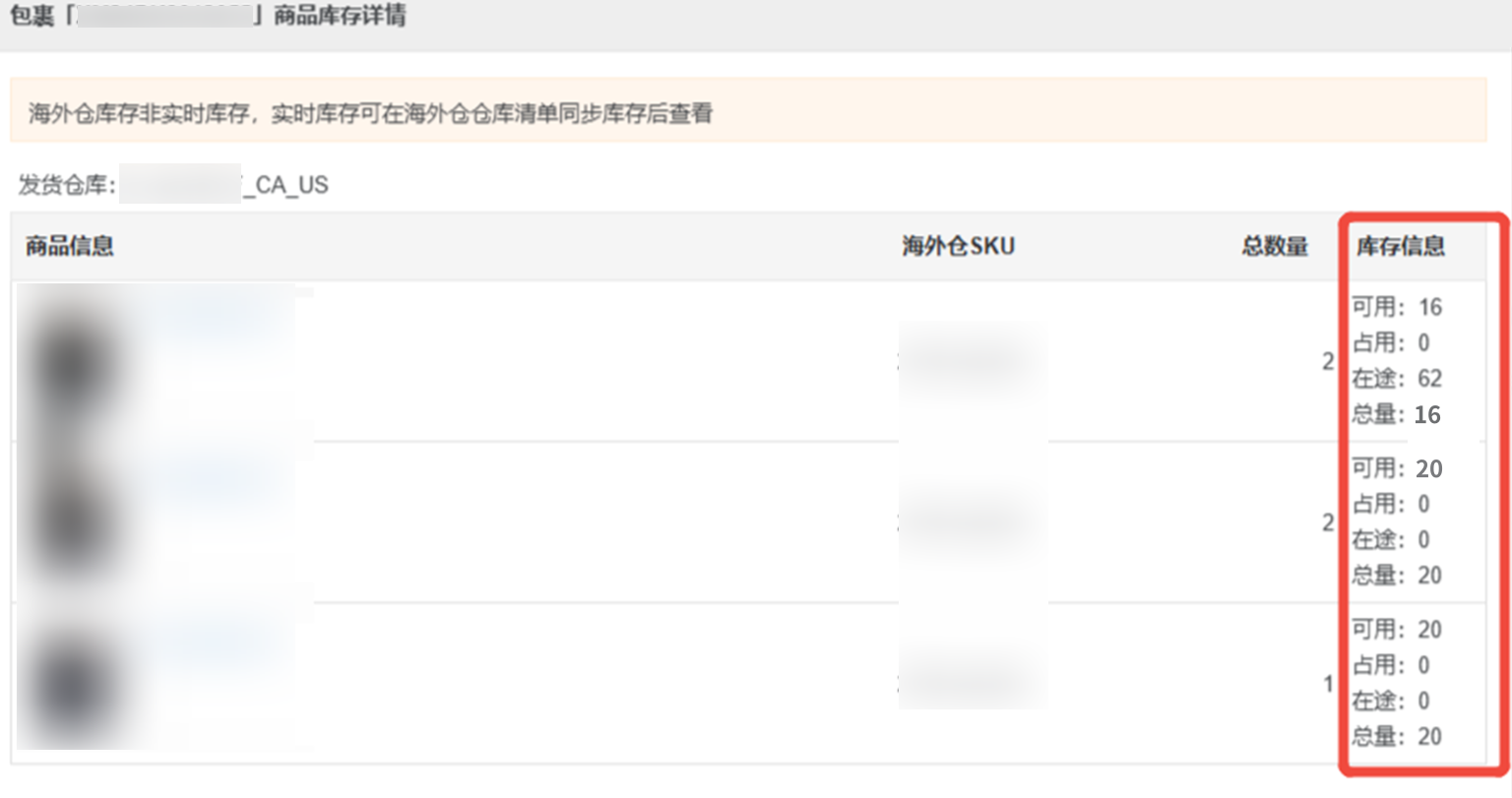 A1:组合SKU展示的是商品管理库存数,点库存详情可以看到海外仓可用库存数量