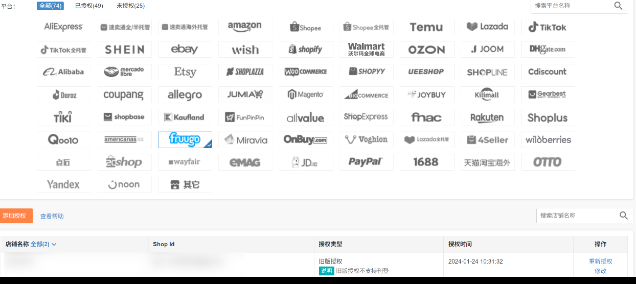 A8:Fruugo授权如果不包含新版授权店铺,则产品模快不会展示fruugo入口