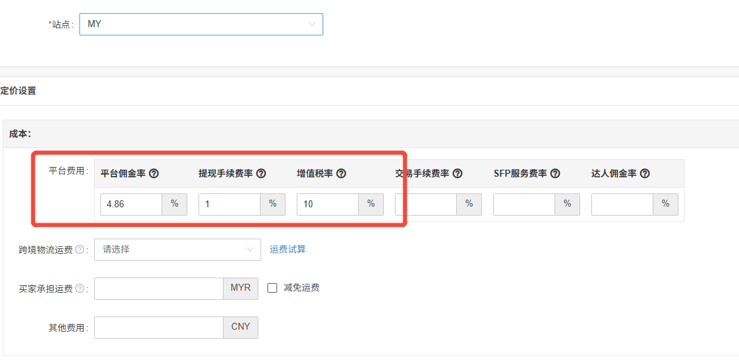 SFP服务费率:参与SFP免运服务计划的商家,官方会按照计划条款向您收取服务费,未参加此计划卖家可不填