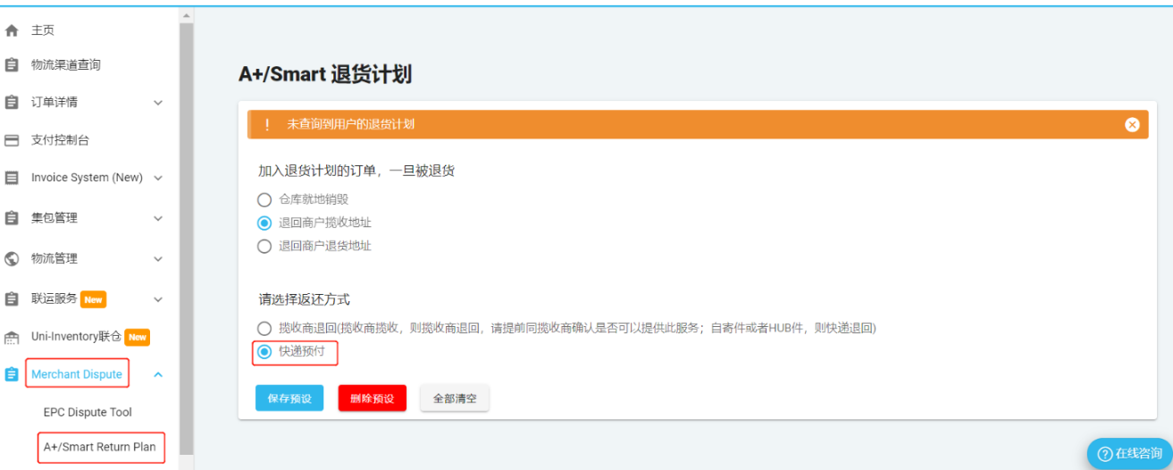 Wish邮后台—商户申诉—A+退货计划—返还方式—选择快递预付】,小秘页面重新获取运单号