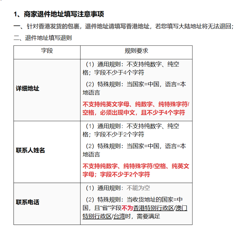 Q3:速卖通线上物流,下单报错:退件地址“退件收件人”格式不符合规范?