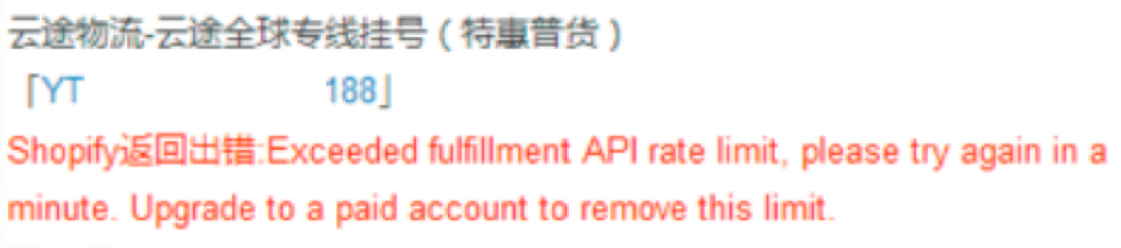订单—Shopify提交发货报错:Exceeded fulfillment API rate limit