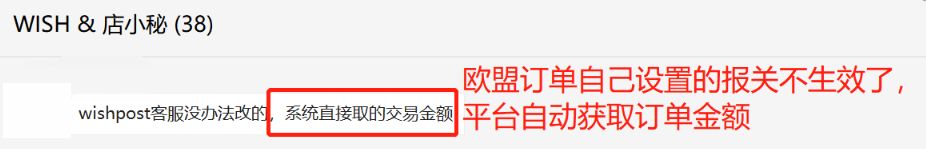 欧盟国家的订单,Wish邮会自动获取订单金额作为报关金额