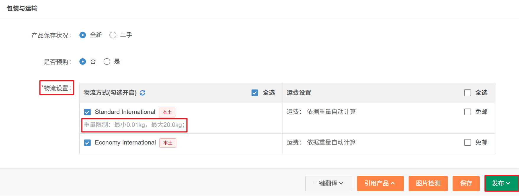 原因:1、产品标题包含特殊字符 2、物流设置的重量尺寸超出物流设置重量尺寸限制 3、选择的产品分类是禁售类目解决方案:1、产品编辑页面,核实产品标题、描述是不是包含特殊字符,修改后再发布2、产品编辑页面,核实包装信息,重量是否在渠道允许范围内,更改后再发布3、选择的类目是Shopee平台禁售的,需要更换类目后发布4、如果核实上面的3点还是不行,您在Shopee这个店铺后台选择一样的类目 复制一样的信息看下能不能发布成功