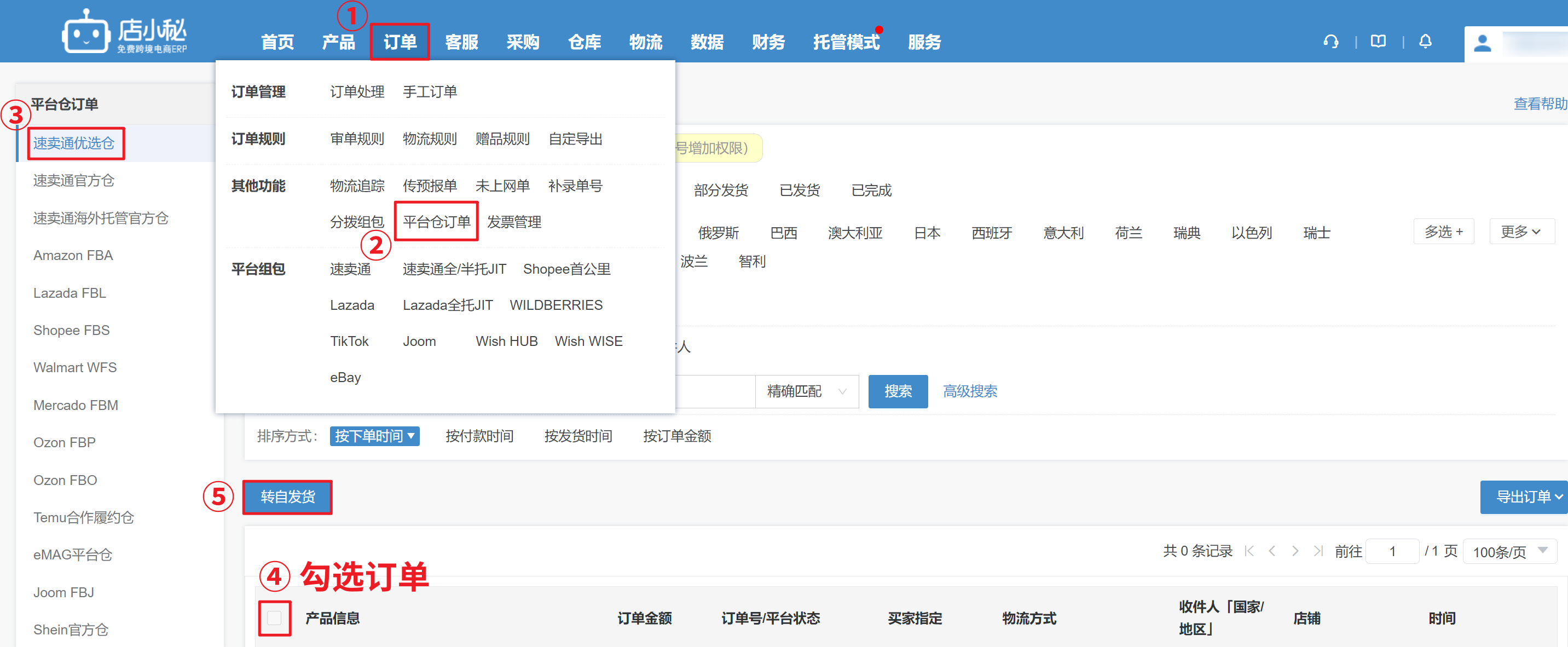【4】小秘页面操作转自发货之前,需要您先通过菜鸟工作台完成【仓发转纯配】后,否则可能会造成重复发货