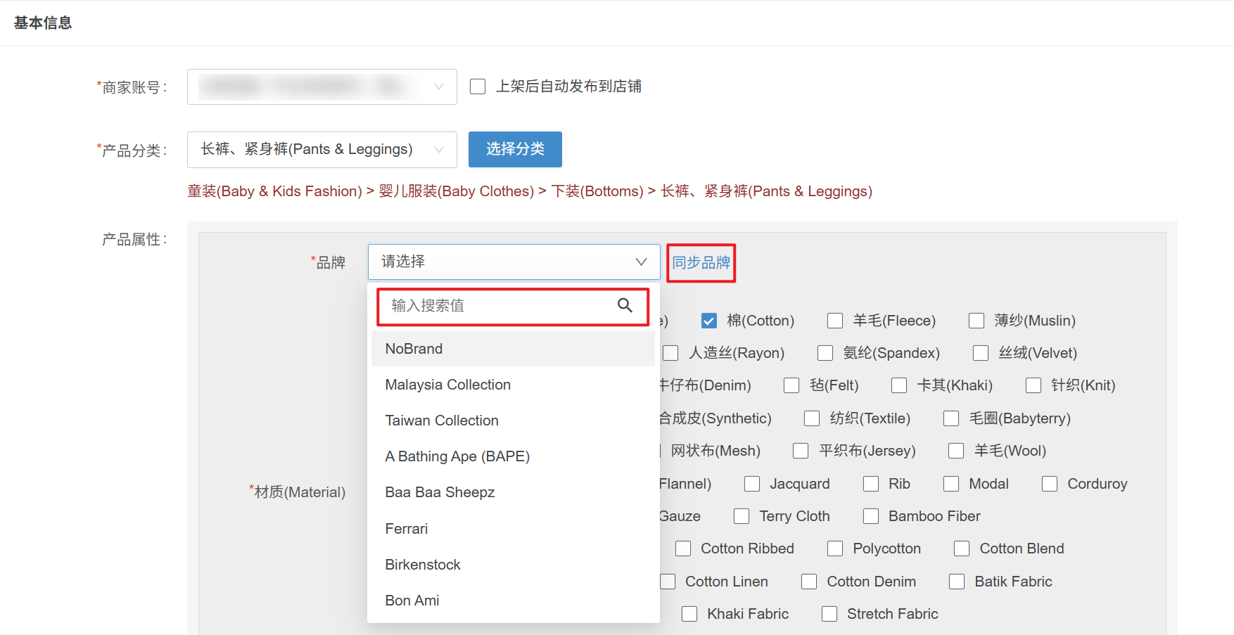 1、点击同步品牌后,若品牌库中没有您的品牌,您可以选择NoBrand