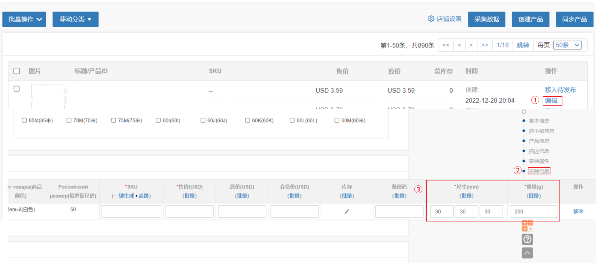 原因:Ozon平台接口有密度的限制,密度最小0.001,最大不能超13.5解决方案:小秘页面重量的单位是g,尺寸单位是mm,需要换算成对应的单位在按照下方的计算公式修改下尺寸和重量,符合平台限制以内的即可计算公式:重量kg/长(分米)/宽(分米)/高(分米) 示列:重量是200g,长、宽、高都是30mm 0.2kg÷0.3dm÷0.3dm÷0.3dm=7.4