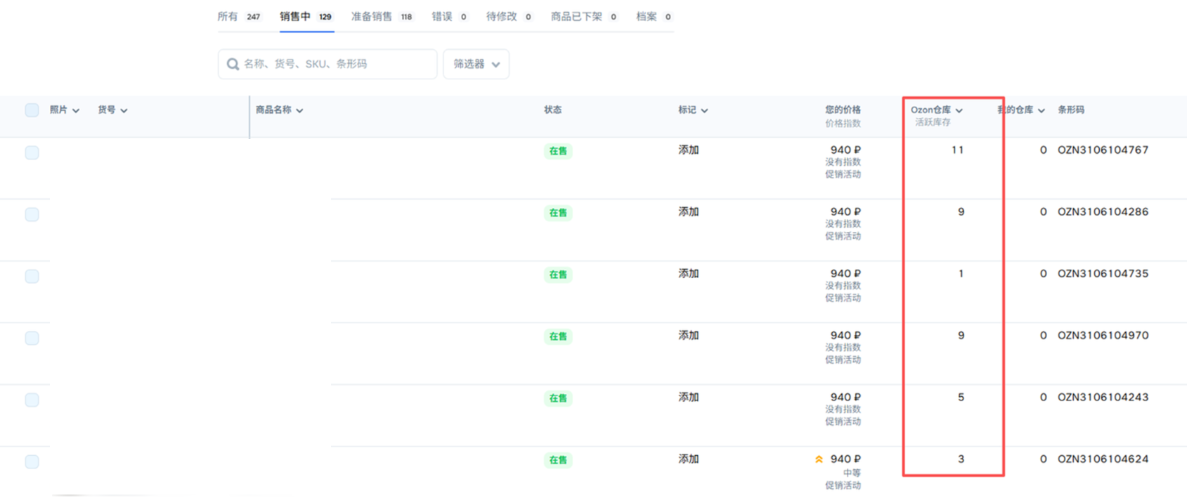平台接口限制,目前Ozon仓库的库存获取不到,只能到店铺后台查看库存