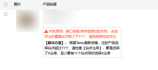 Temu半托管发布报错:该发货仓的覆盖站点数少于11个
