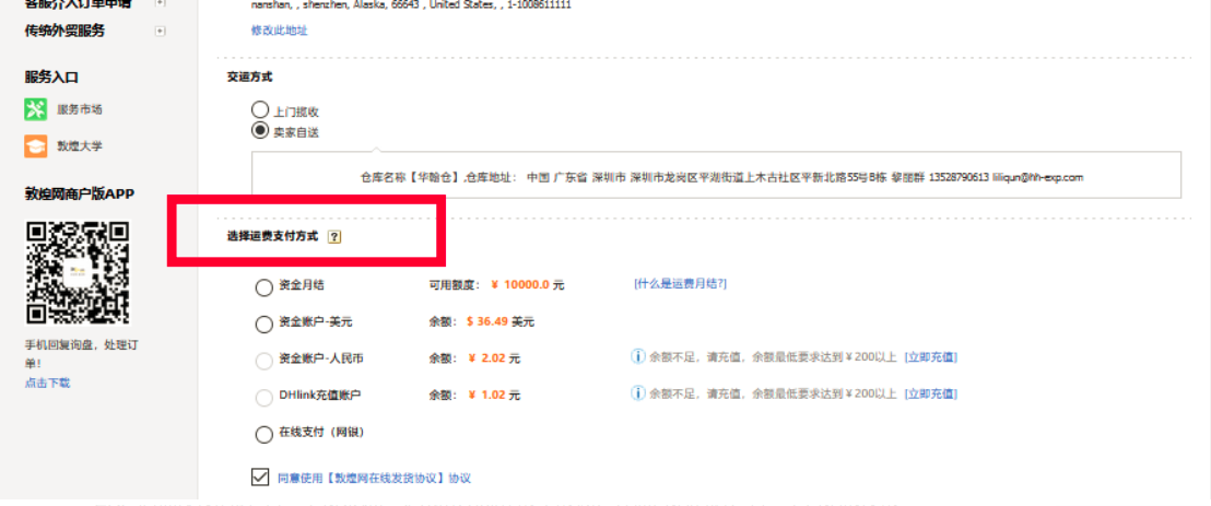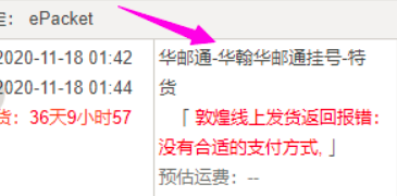 Q2:敦煌线上申请单号报错: 敦煌线上发货返回报错:没有合适的支付方式