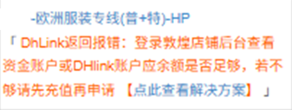 Q4:DHLink申请单号报错:DHLink账户余额不足,请先充值后再申请
