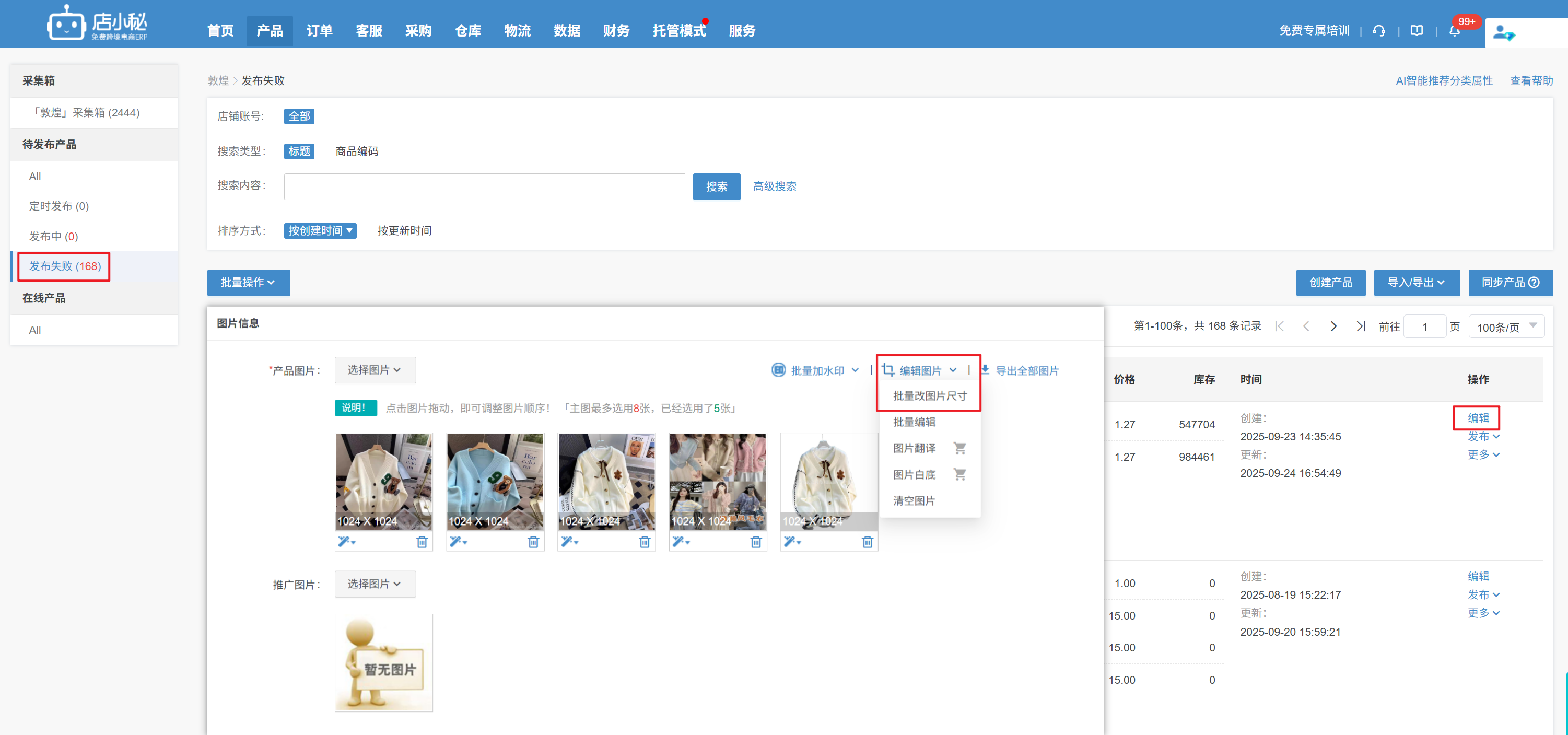 产品编辑页面找到对应的图片修改图片尺寸或者使用图片压缩软件修改之后再上传图片发布