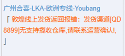 订单—敦煌线上下单报错:发货渠道[QD8899]无支持揽收仓库,店铺后台可以下单?