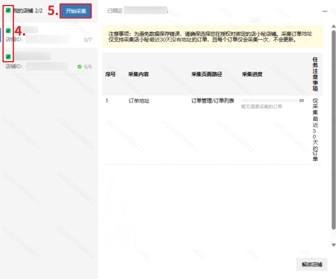【4】每个订单仅支持采集一次,已经采集过的订单不会更新地址信息,同一店铺每天最多采集10次