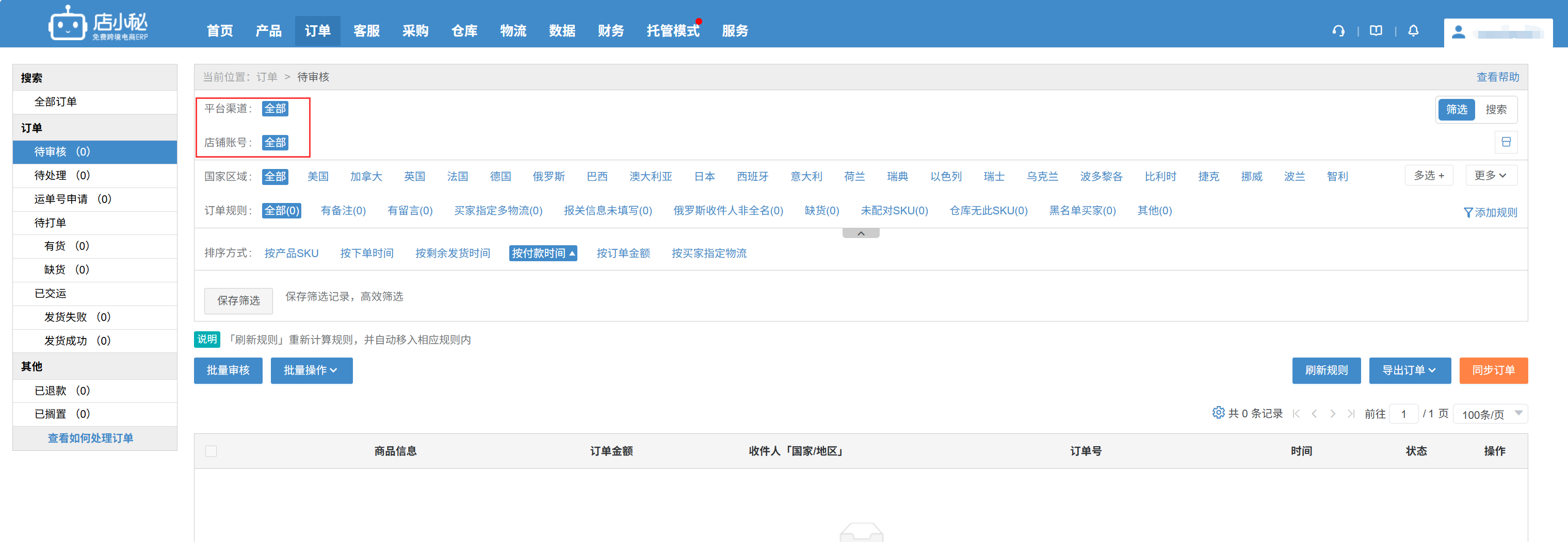 待打单(有货、缺货)、已交运,订单页面才会显示这些订单状态和订单