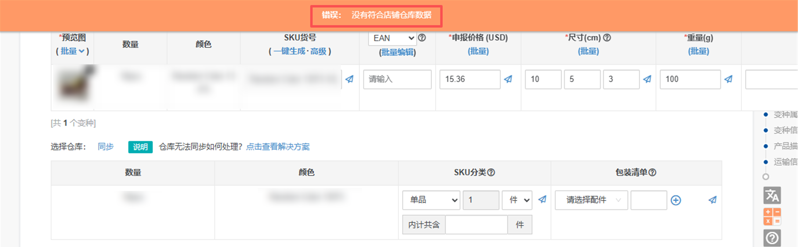 Q4:Temu发布产品同步仓库提示:没有符合店铺仓库数据 ,店铺后台实际是有仓库的,重新授权也没有用