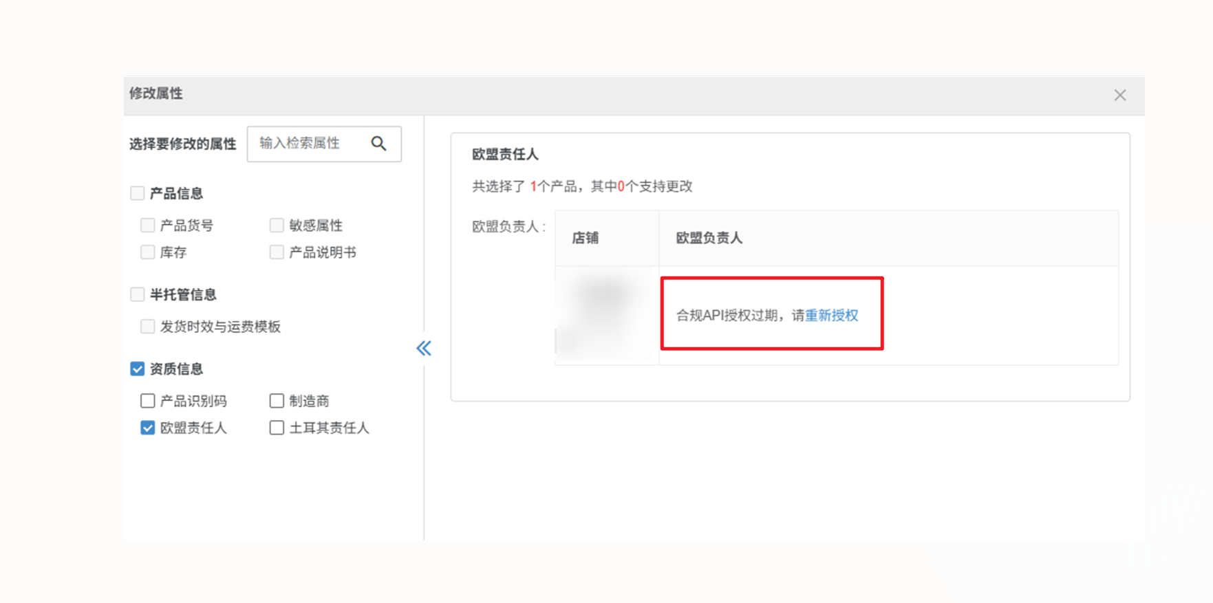 Q2:Temu半托管批量修改欧盟责任人报错:合规API授权过期
