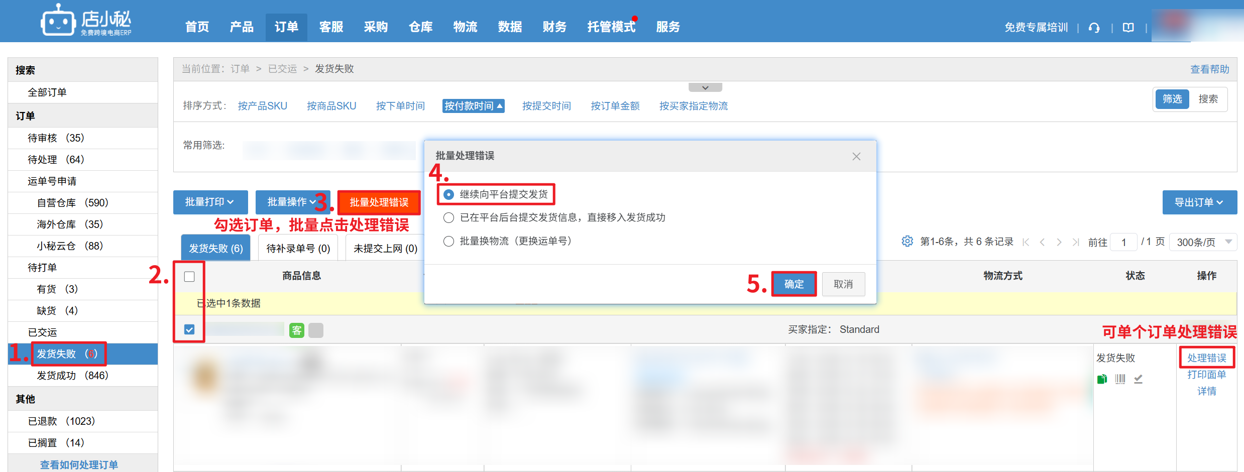 1、Temu平台接口请求超时异常,请稍后重试提交发货,点击【处理错误—继续向平台提交发货—确定】
