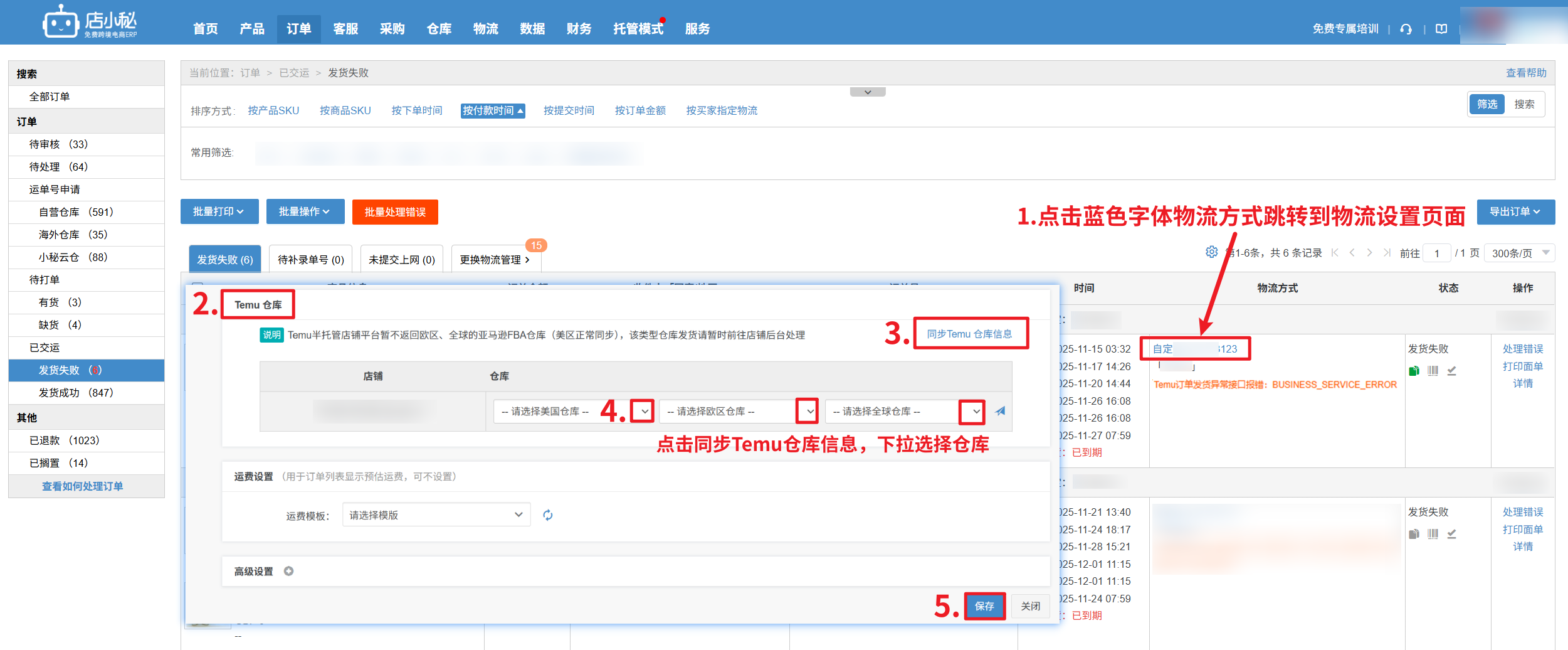 以上情况,请联系Temu平台买手确认并在后台修改正确仓库地址后,返回小秘物流设置页面重新同步选择发货仓库,再重新提交发货