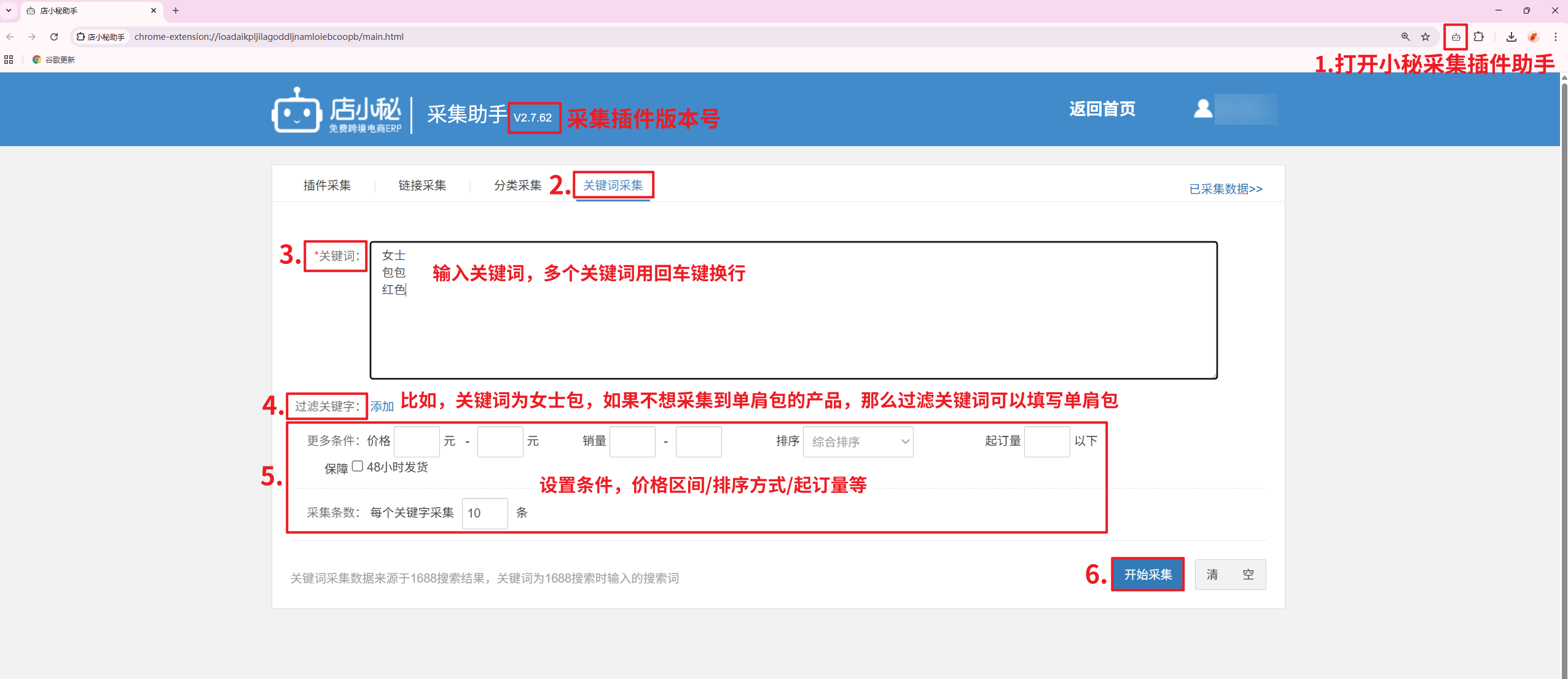 注意:需要安装最新版本采集插件 点击查看安装流程