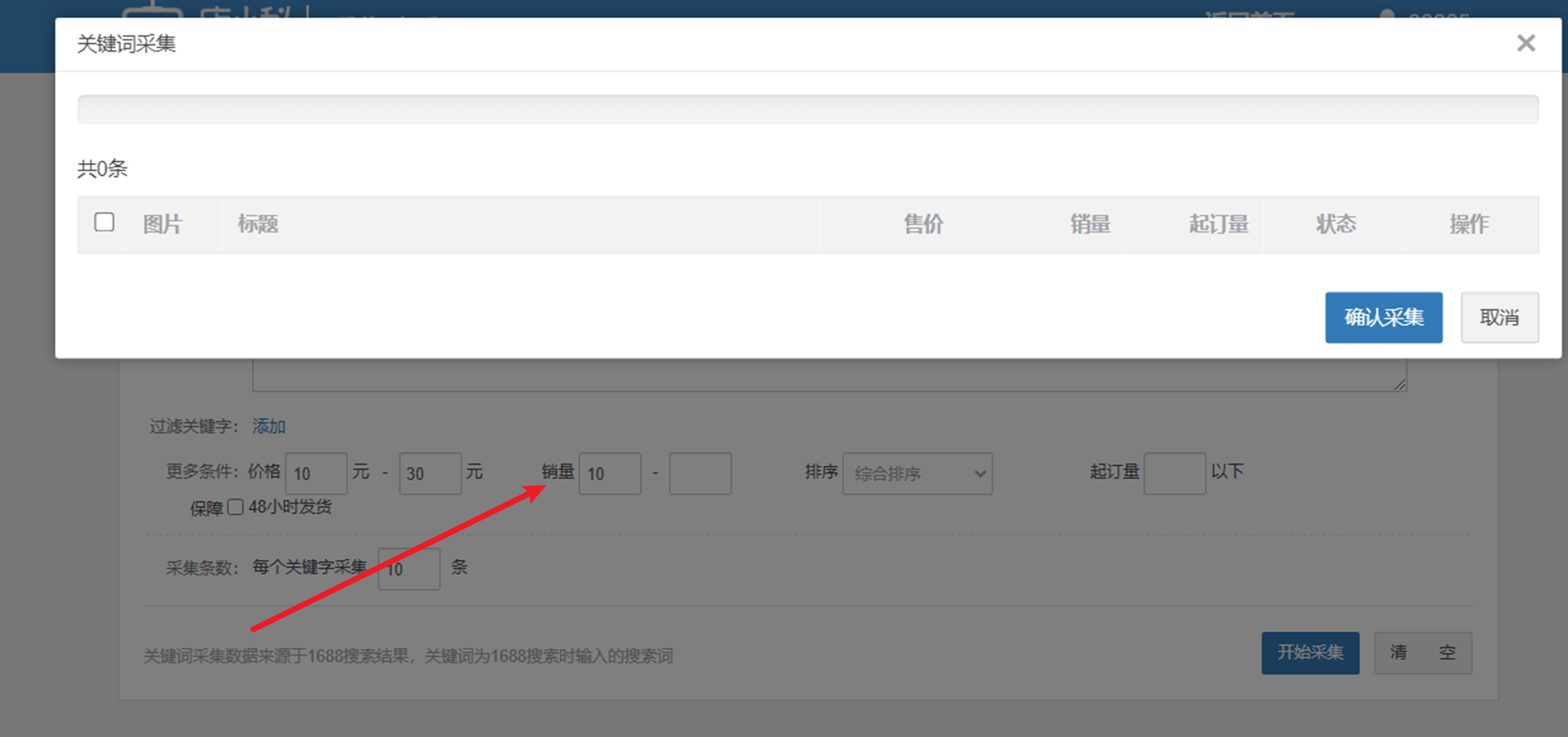 A1:1688平台接口不支持获取销量信息,暂时可以先把销量条件去掉