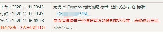 速卖通后台用这个单号发货也会提示这个错误