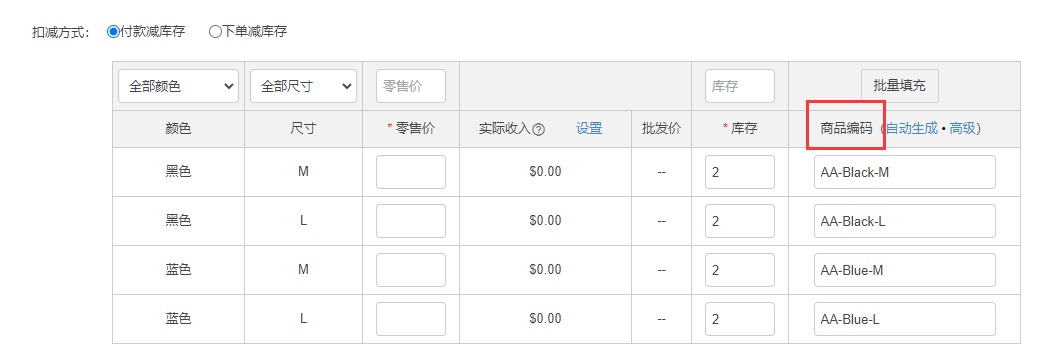但是如果您没有设置产品SKU,一键生成的时候,产品SKU为空,需要手动填写
