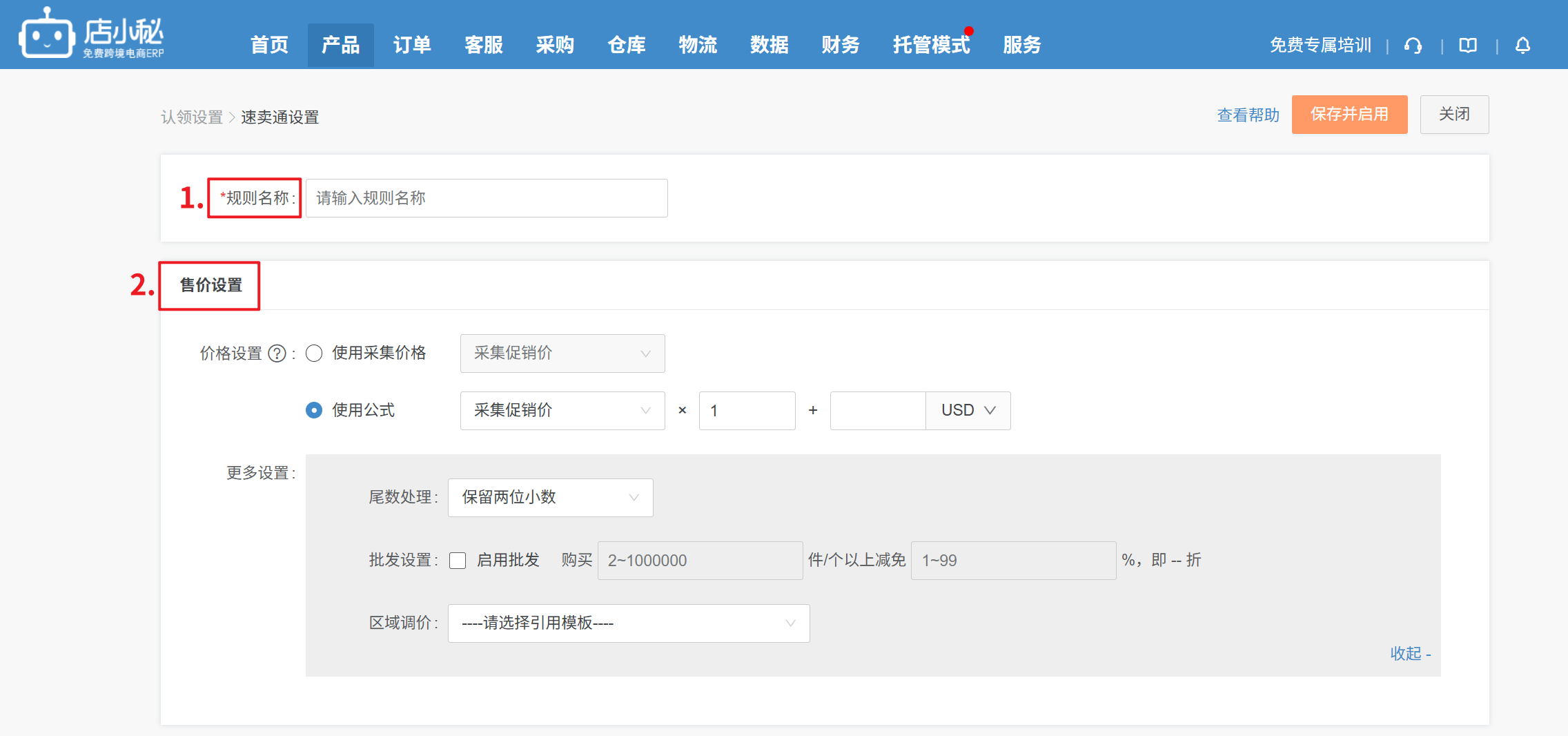 更多设置:① 尾数处理:因为汇率换算可能存在很多小数,可针对价格的尾数处理