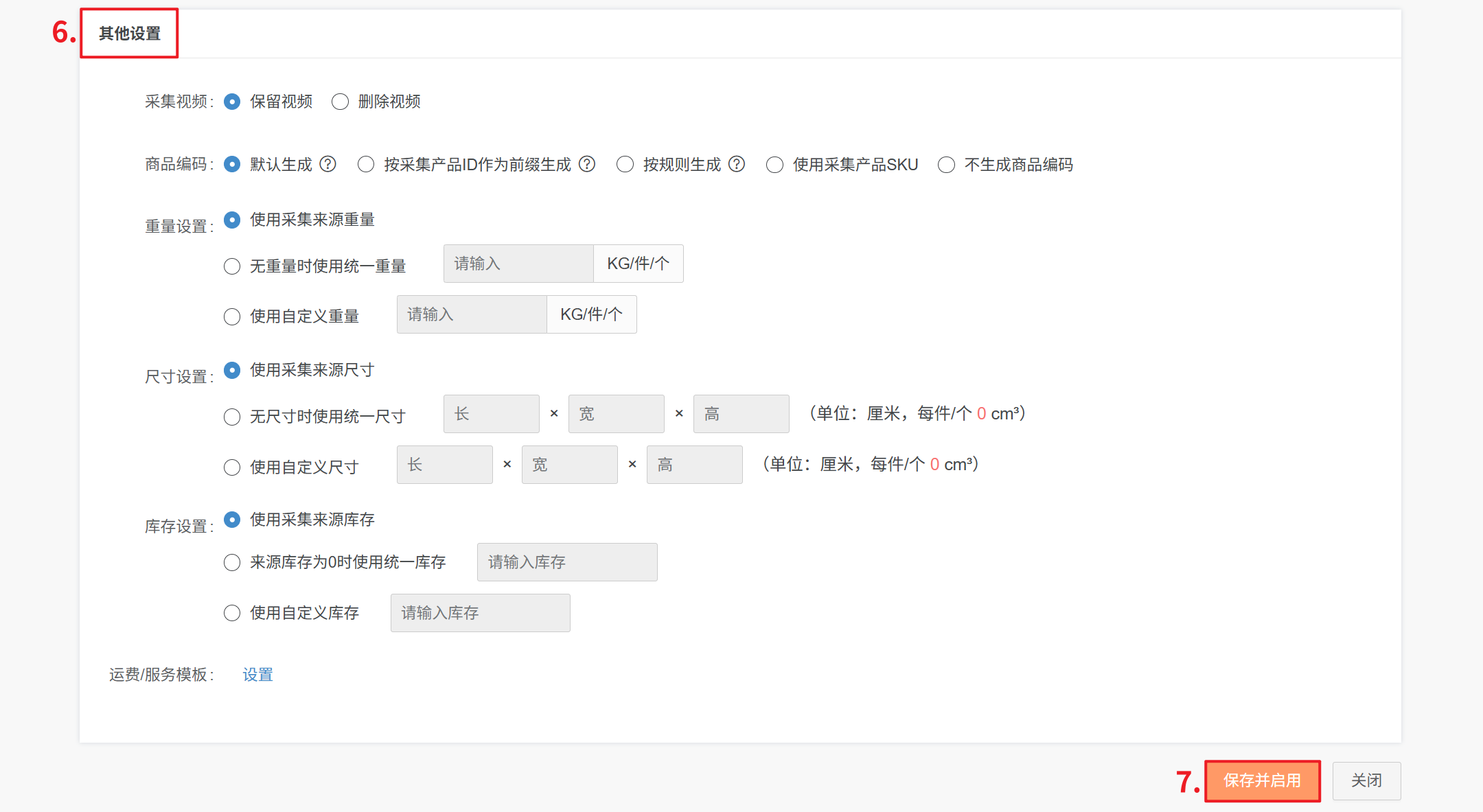 库存设置:① 可设置使用采集来源库存