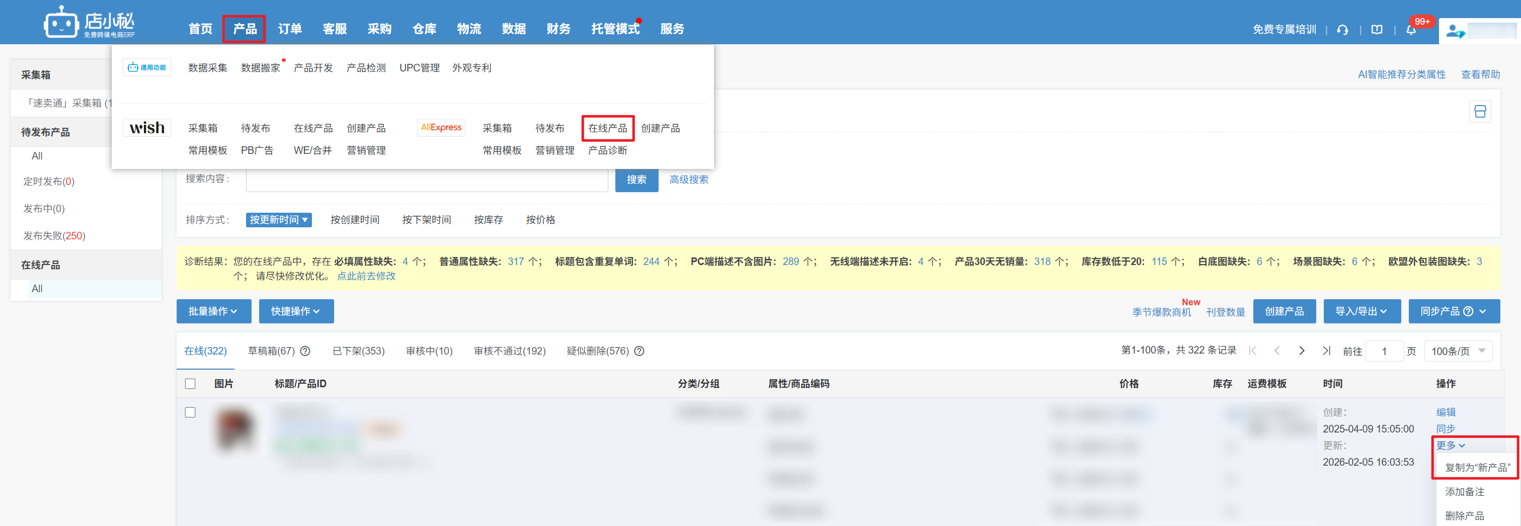 如果您需要重新编辑发布,可以点击【更多—复制为新产品】,编辑后重新发布即可