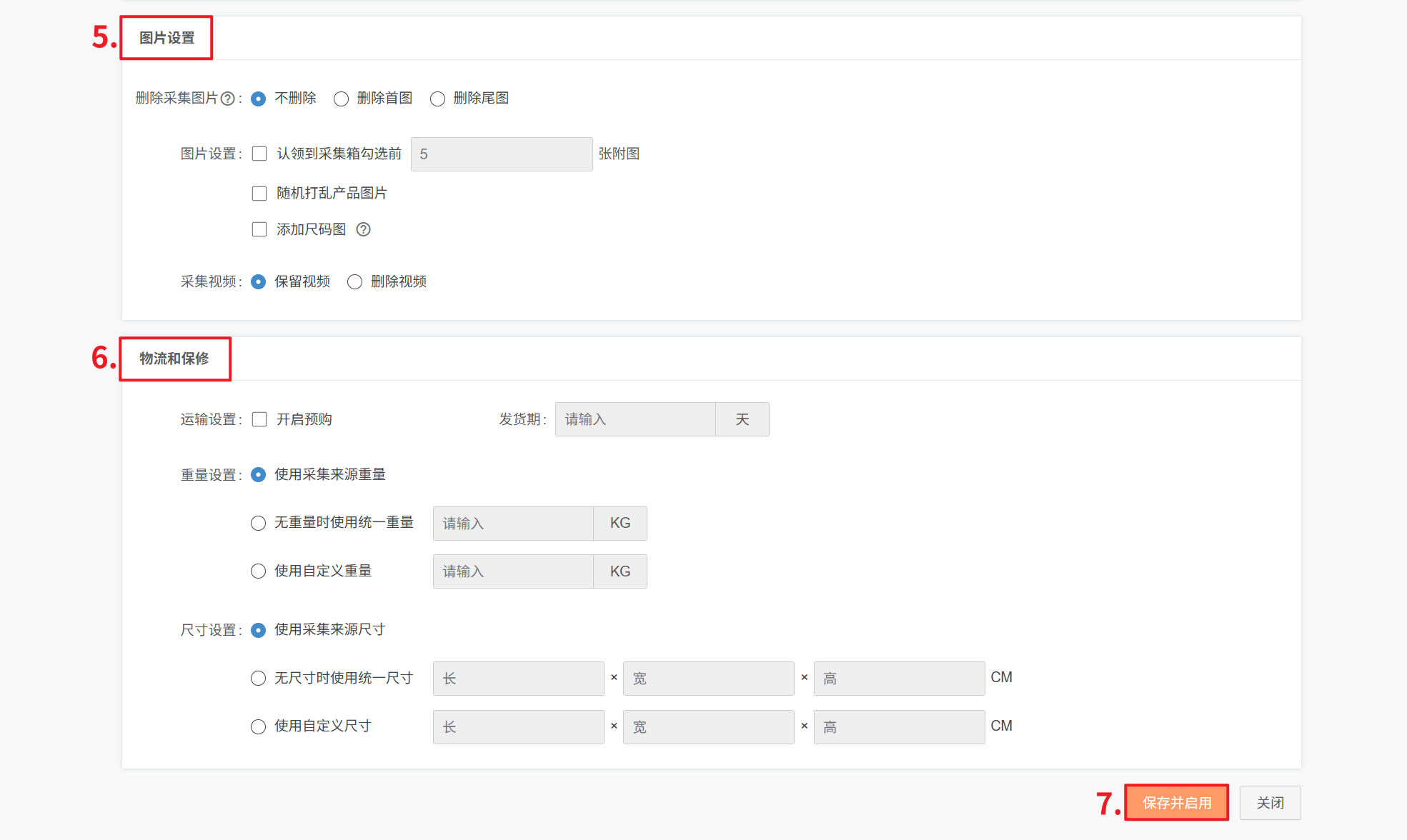 ③ 不管采集时是否有尺寸,默认使用自定义尺寸