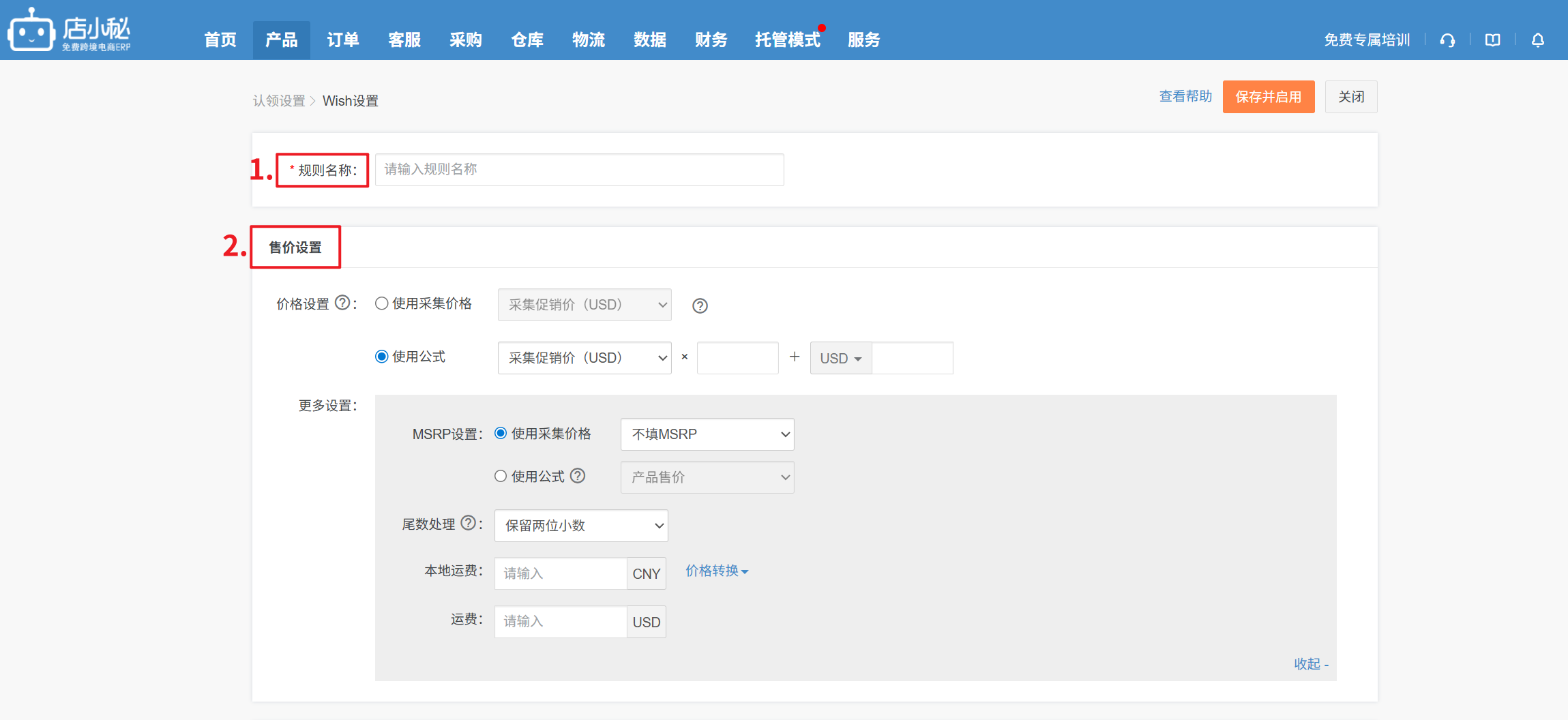 更多设置:① MSRP设置:可直接选择采集的价格或者选择使用公式,系统自动按设置好的公式计算价格