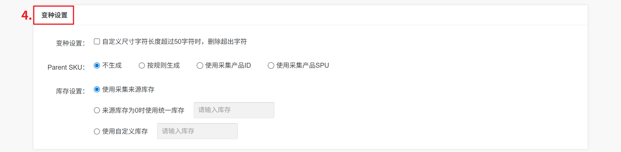 ③ 按采集产品ID作为前缀生成:按【产品ID+变种属性名称】生成Parent SKU
