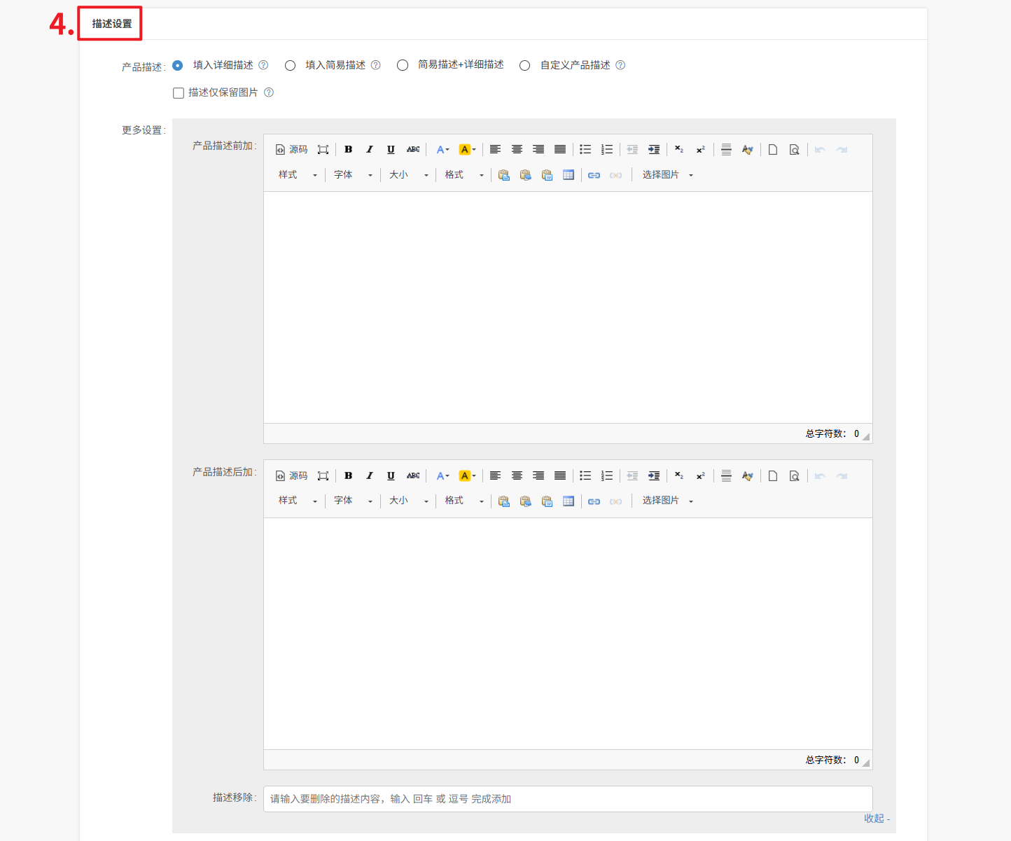 产品描述:可获取数据采集的通用采集箱里的简易描述、详细描述的文字内容,或者自定义添加描述信息