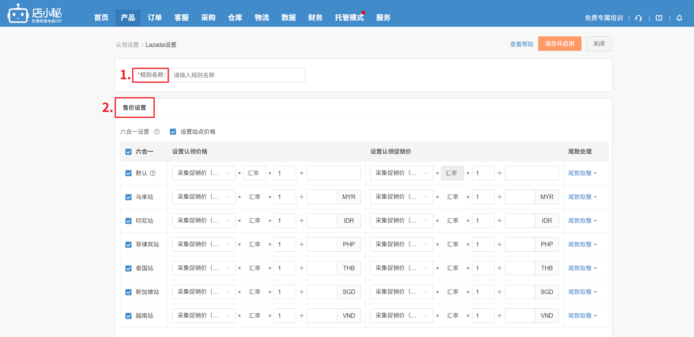 8、保存并启用:勾选店铺后,点击确认, 后续从通用采集箱认领到Lazada的产品,就会按认领规则修改